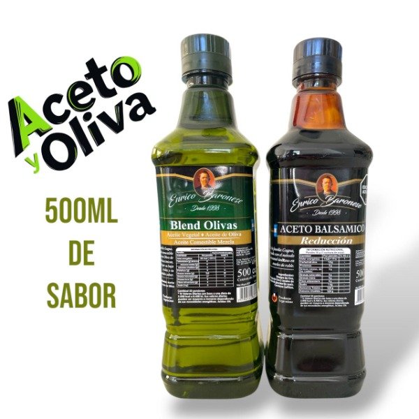 Aceto balsamico reduccion dulce x 500 ml., envase pet. + Aceite de Oliva blend de Olivas x 500 ml, envase pet.