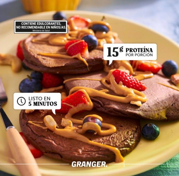Los Pancakes Proteicos de Granger son una deliciosa opción para aquellos que buscan potenciar su ingesta de proteínas de manera práctica y sabrosa. Cada porción está diseñada para ofrecer un equilibrio ideal entre sabor y nutrición, permitiéndote disfrutar de un desayuno o merienda saludable sin sacrificar el gusto.